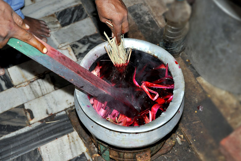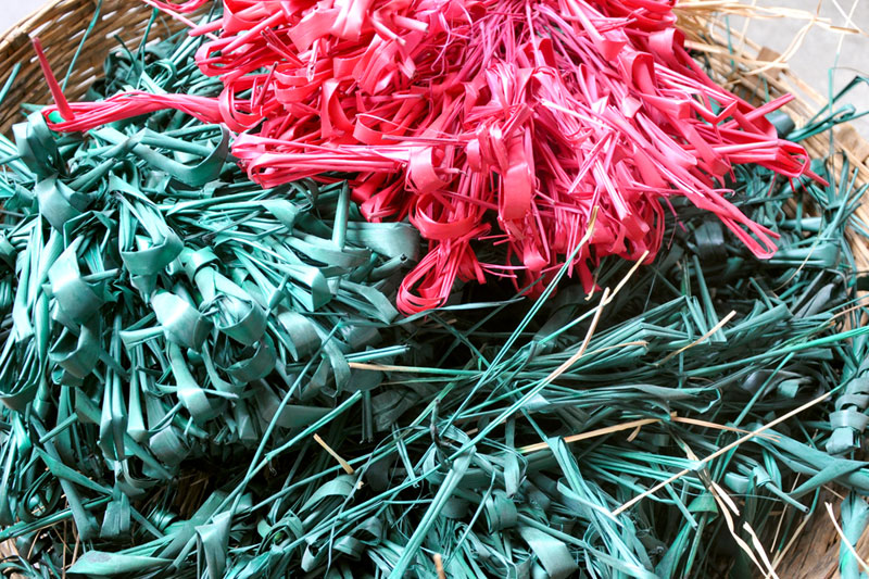 • The grass is soaked in the color solution for 5 to 10 minutes.