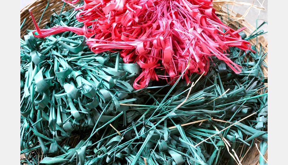 The grass is soaked in the color solution for 5 to 10 minutes.