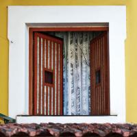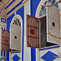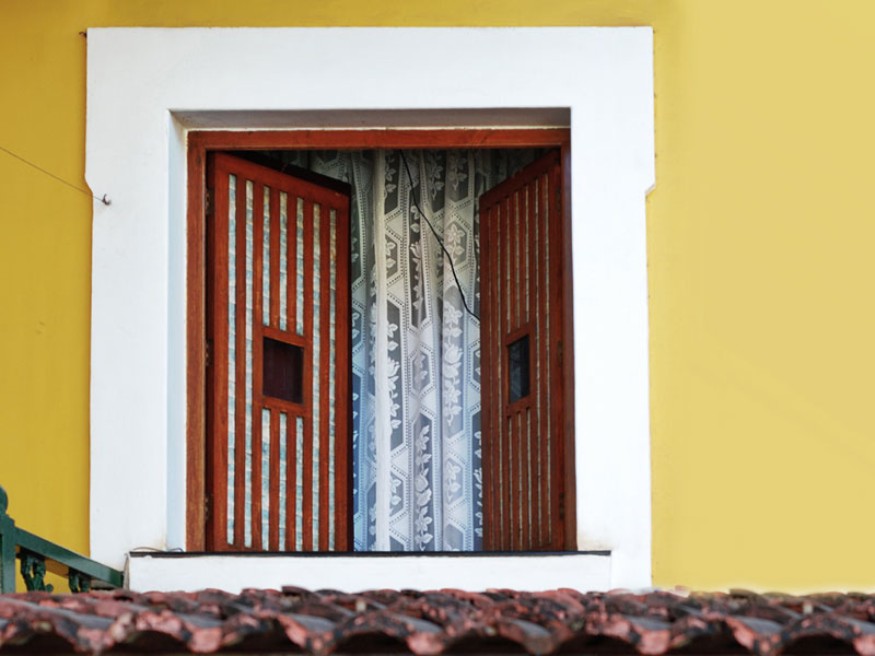 House in Fontainhas, Panjim, Goa. Using no glass in the window, one can find very fine and straight ster shells are used instead. They are inserted into wooden frames, allowing the light to come in as if it is passing through paper.