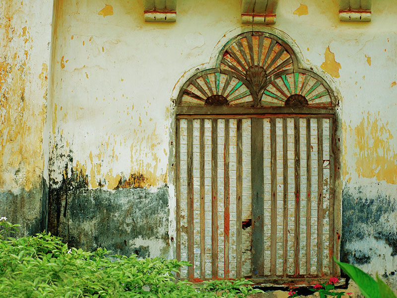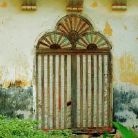 Weathered ruins inBraganza House, Chandor, South Goa. It is almost 300 years old. Glass came to Goa as late as 1890 and remained an expensive building material well into the 20th century. Today some of the houses in Goa are decrepit and so are the windows.