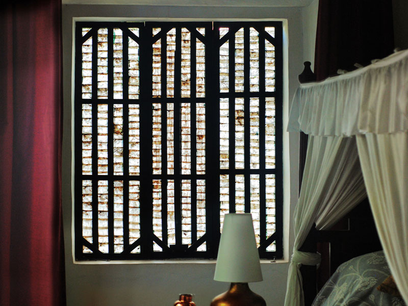 Heritage House, Shioli, North Goa The indulgence of the translucent, but functional nacre of the mother-of-pearl can be seen in this shell window.