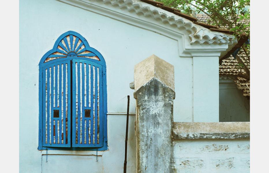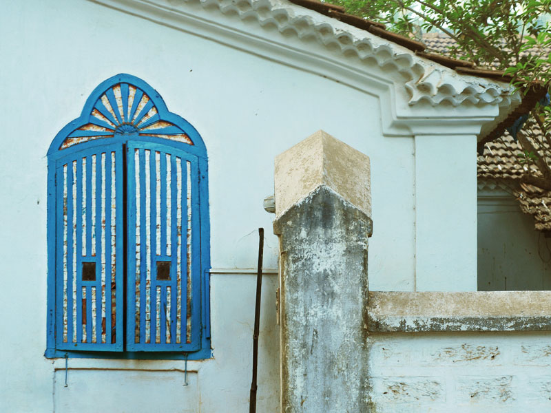 Arpora, North Goa. One of the assertions of the local Goan identity is the implementation of shells in the window.