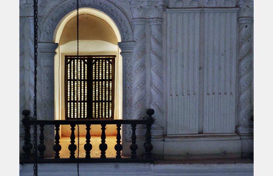 • Weathered ruins inBraganza House, Chandor, South Goa. It is almost 300 years old. Glass came to Goa as late as 1890 and remained an expensive building material well into the 20th century. Today some of the houses in Goa are decrepit and so are the windows.