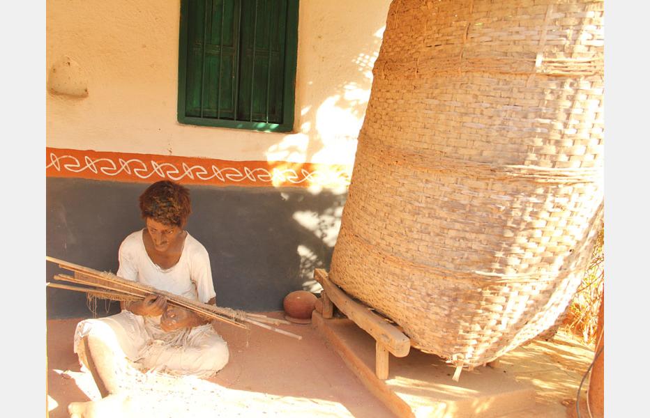 • Cane basket making - Village artisans are making cane baskets for daily use.