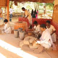 Shilparamam, a crafts village, conceived in the year 1992, is situated just about few kilometers from Hyderabad city. Sprawling over 65 acres (260,000 m2) of land in the hi-tech hub city of India, Shilparamam gives a scenic ambience of tradition and cultural heritage. For promotion and preservation of Indian arts and crafts and to motivate the artisans, the state government established this platform. Enchanting the blend of arts and artifact, epitomizing the true legacy with the diverse natural beauty of rural India; Shilparamam is tribute to Andhra Pradesh. Exhibiting the rustic richness and creativity of Hyderabad, it has captivated the imagination of visitors.