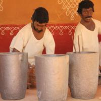 Brass utensil making - The village artisans are busy in making brass utensils.