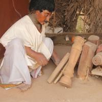 Kalamkari - A village artisan is carving stamps for kalamkari on cloth.