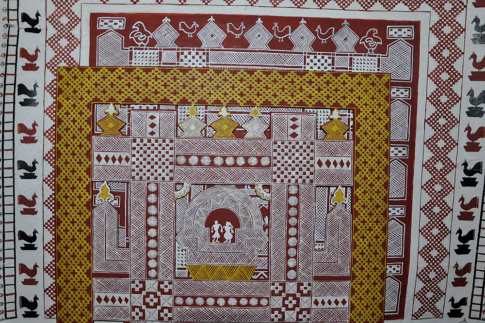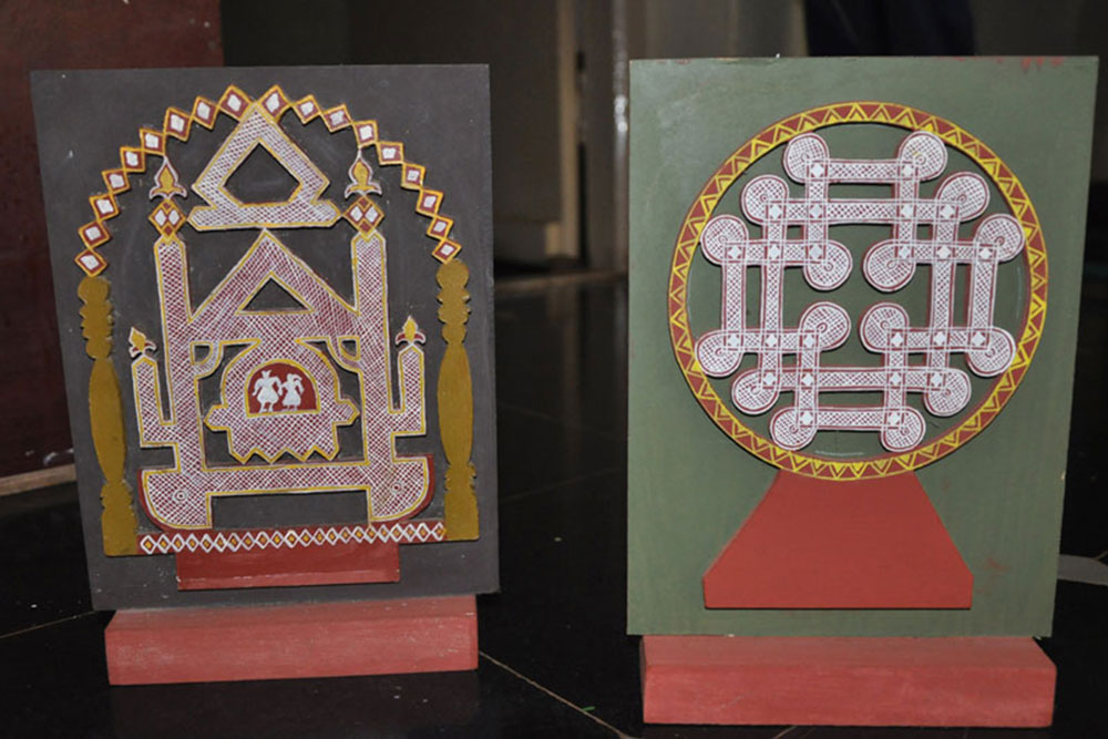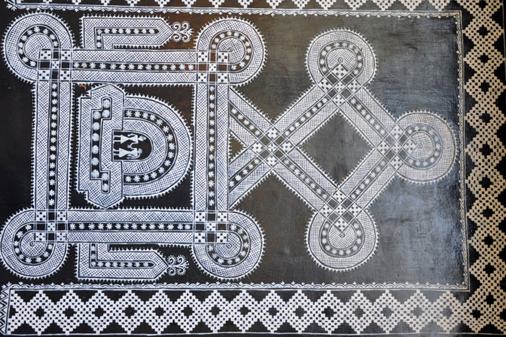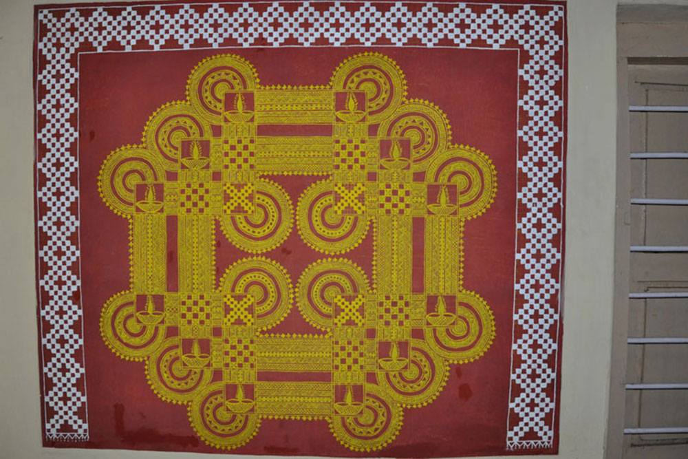 Hase Chittara painting is done on mud walls of tribal houses. The aesthetic designs of tribal figures, geometric patterns are intricately painted with natural grass brush and natural colors which are made using rice flour and Kemmannu-red earth, Sunna-lime stone and turmeric. The unique folk art is mainly practiced by tribal women during their leisure time. All the themes of Hase Chittara are inspired by nature. This art is majorly practiced during weddings and local ritual occasions.