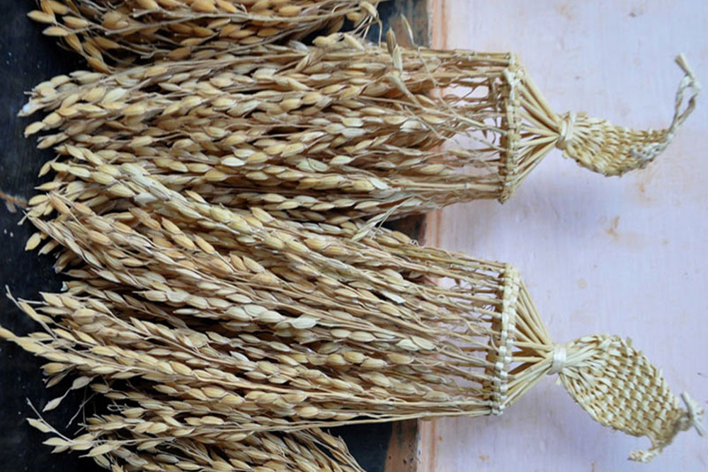 Paddy grain filling are creatively made into interesting decorative items. The finished traditional products are mainly for decorating doors and corridors during festivals and weddings. The life span of final product is 10 years.