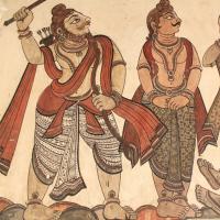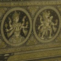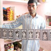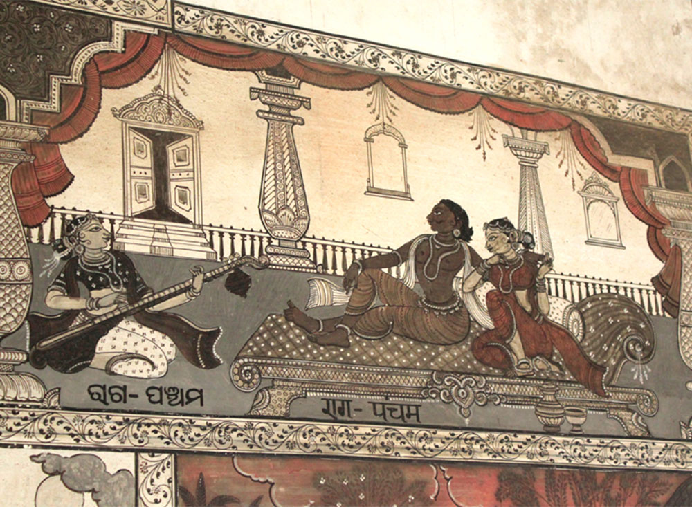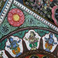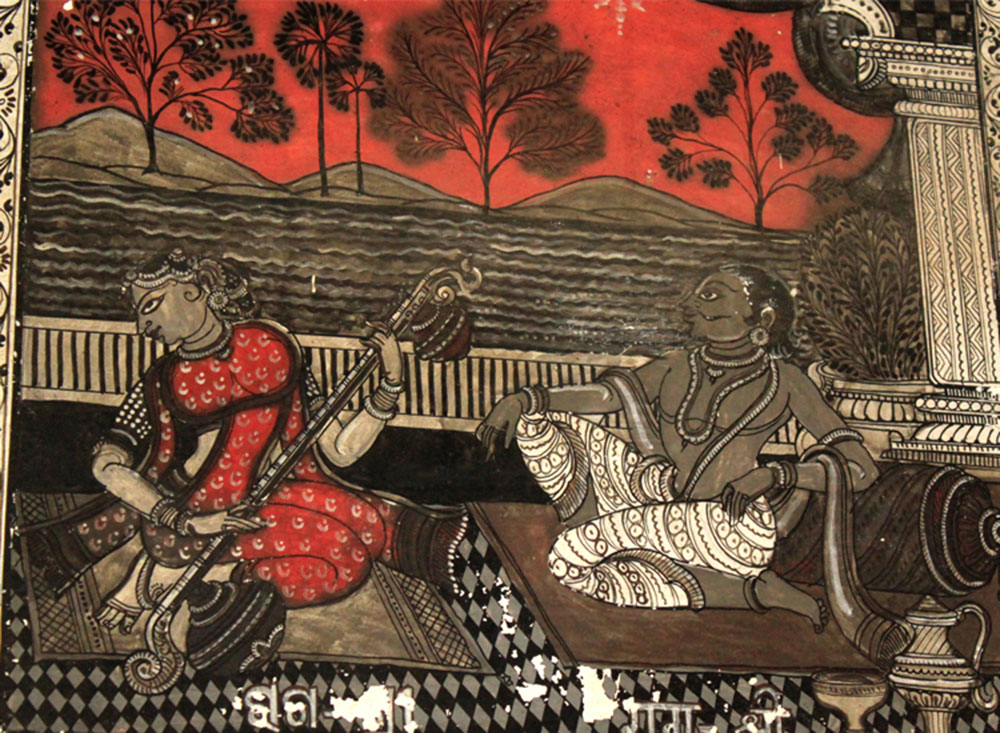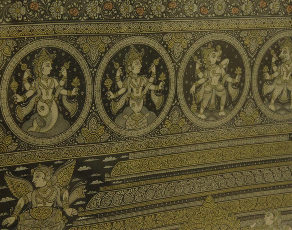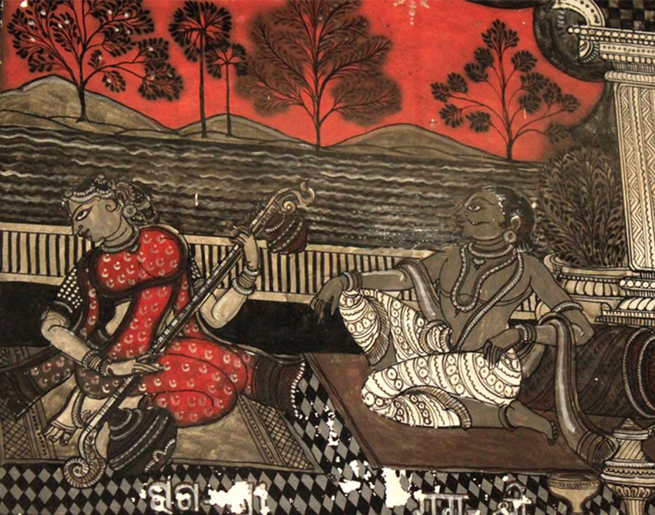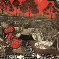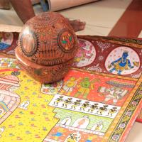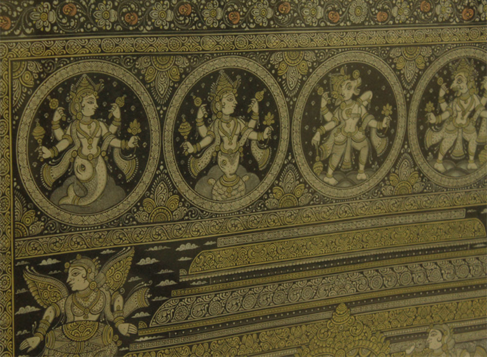 This tradition is inherited in the form of a family sketch book, handed down over generations and cherished as a precious sacred possession. The bold lines, the bright colours and the fine pictorial conceptions distinguish this art form from the rest. Its uniqueness lies in its overall finesse and rhythmic juxtaposition of elements. A typical feature being the intricate borders embellishing the central theme of every Pata painting, usually in red and involving floral motives. There is an interesting mix of folk as well as classical elements.
