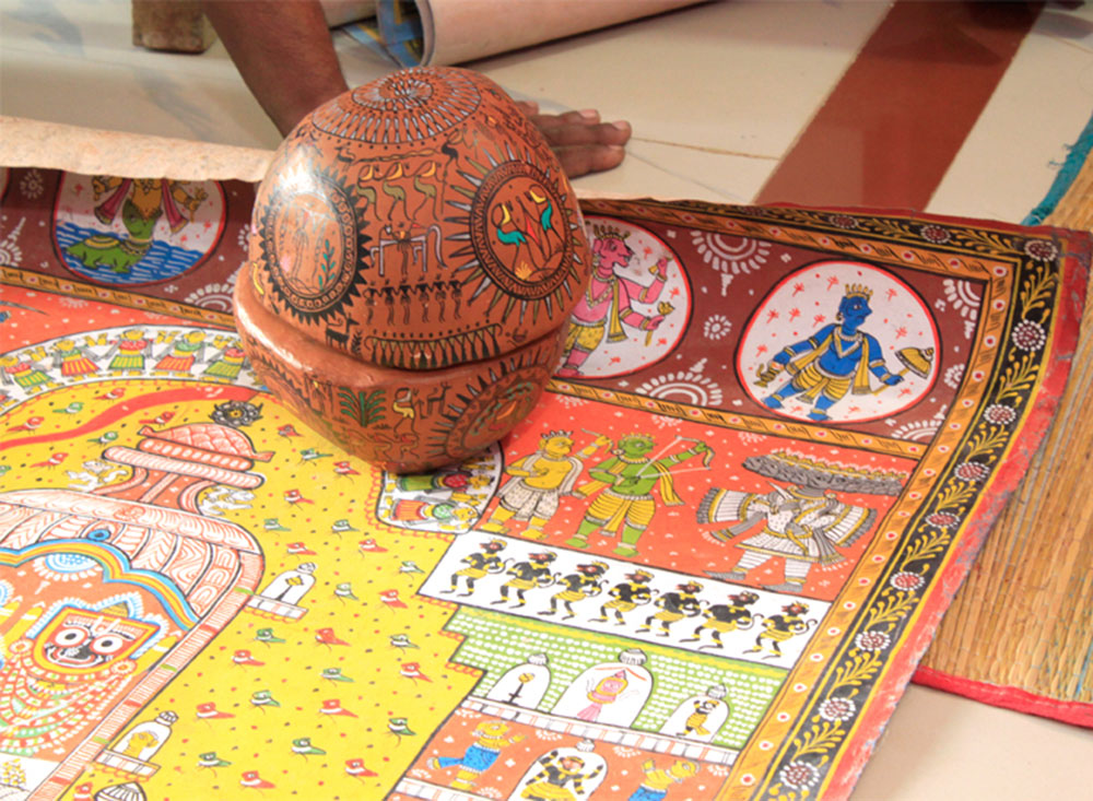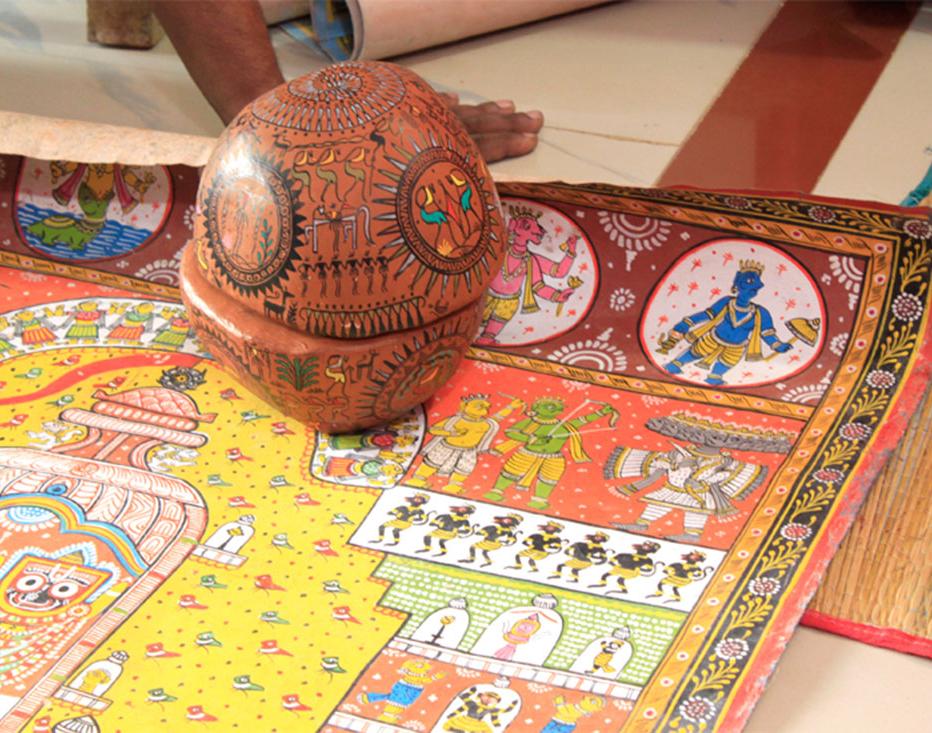 Patachitra, the intricate and artistic folk art, literally meaning ‘Picture on cloth canvas’. Its deliberate characterization, dexterous play of lines and colours and mélange of aesthetic themes stand it apart from the other miniature art and painting styles. Earlier done only on a cloth canvas and traditionally known to depict only religious and cultural aspects, today Patachitra artists are seen experimenting new mediums and themes. Seen as a significant cultural memorabilia in the temples, a rare collectable in the form of Ganjappa cards or as an object of pure home décor, Patachitra is an art to live and flourish.