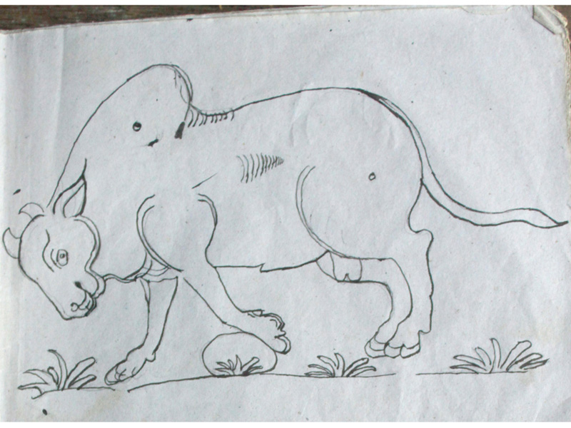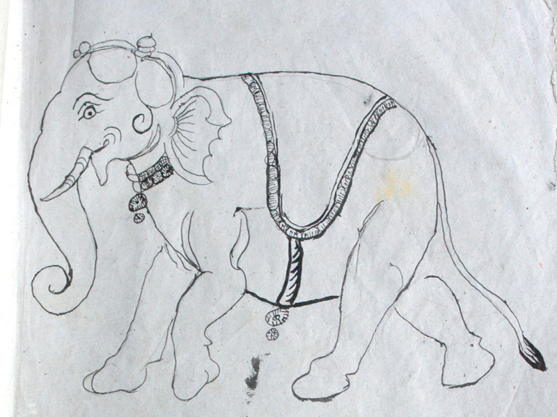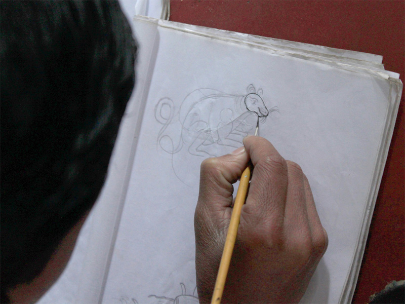 The Pattachitra artists or ‘Chitrakaars’ use different hand drawn sketches for reference and practice. These are handed over in the form of a family sketch book, over generations and cherished as a precious sacred possession. The younger artists are given rigorous training over years to internalize the style such that when they start practice, the typical features are maintained.