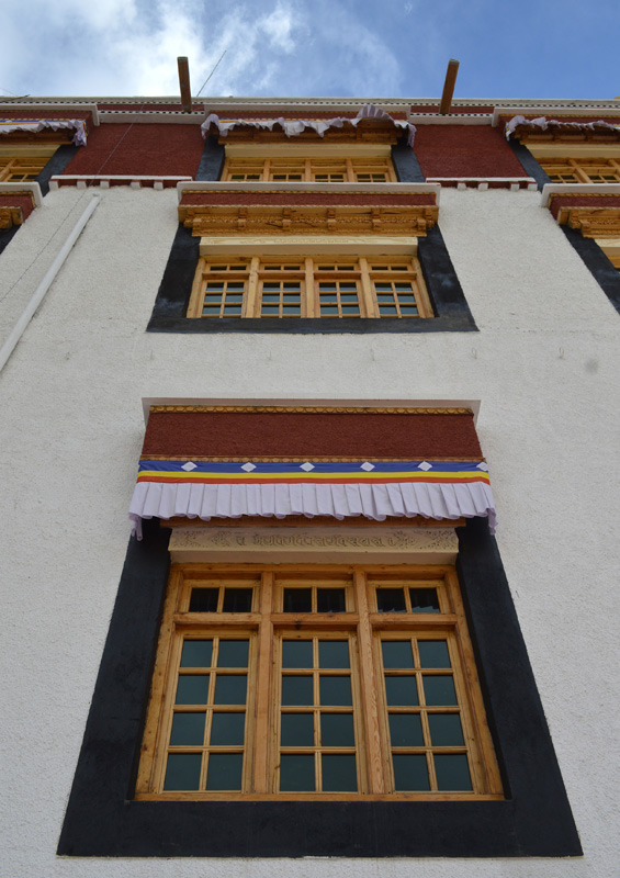 The Ladakhi windows adorning white fabric denote the fact that the rooms belong to senior monks.
