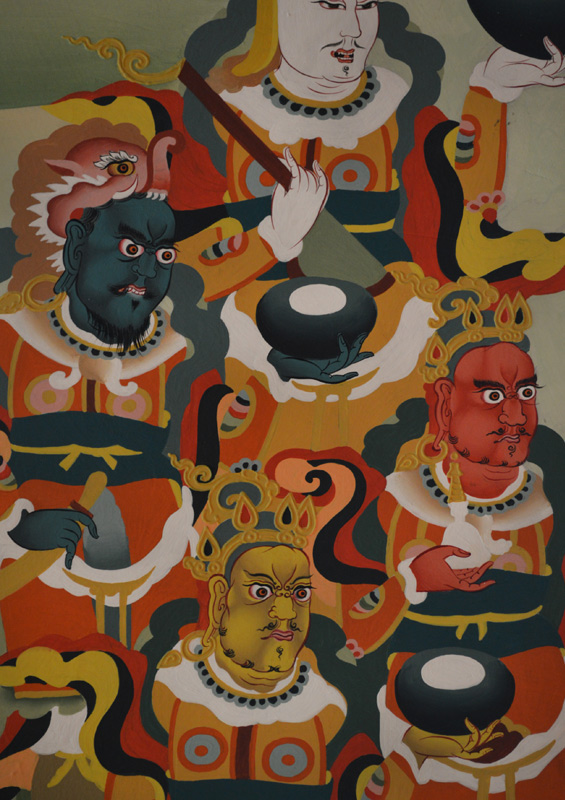 The four kings - protectors of the cardinal directions have been represented as a painting on a wall.