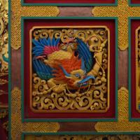 • A synthesis of all eight symbols of Buddhism can be seen carved on this gold painted cupboard.