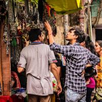 Rani no Hajiro, also known as Mughalai Bibi’s Tomb or Tombs of Ahmed Shah’s Queens, is a tomb complex near Manek Chowk, Ahmedabad, India. The surroundings of the tomb complex has over the years turned into a marketplace. Chaniya cholis and oxidized accessories are the main attractions of the market. During Navratri and other festivities, the market becomes even more crowded and lively.
