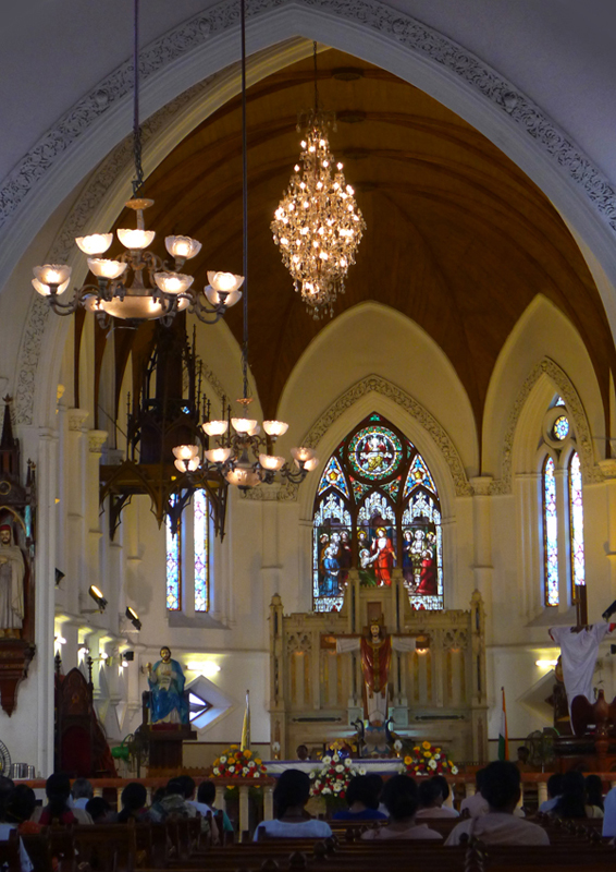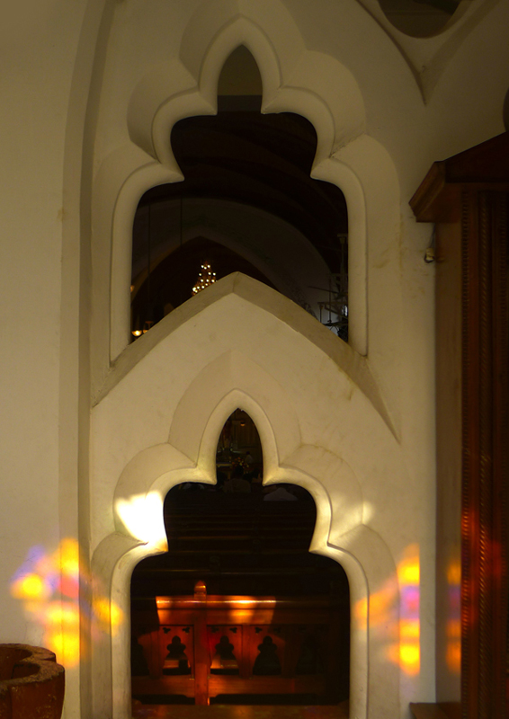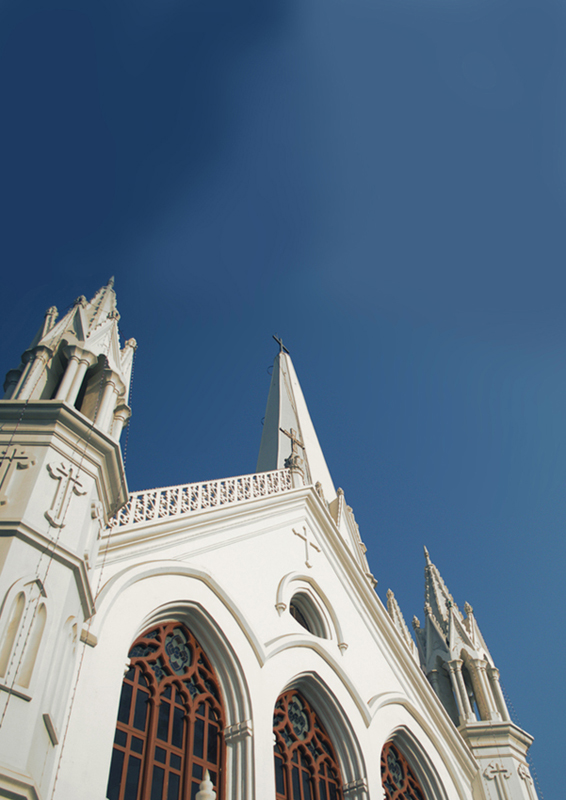 The church is spotless white from outside, with a cool dark coffee brown ceiling and supporting arches on the inside. Typical of the Neo - Gothic architectural style, it sweeps over you with a feeling of calmness, once you enter the church.
