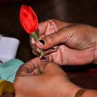 Goan handicrafts are known world-wide. One cannot return without having some crafts of Goa as a souvenir. Artificial flowers, potli bags, designer candles, seashell crafts, and satin flower buds are few handicrafts from this state. Satin is a type of fabric material. It has a smooth and shiny surface. Many accessories like purses, clutches, and shoes are being made out of the rich Satin fabric. It has gained popularity over the centuries and has become more affordable due to the innovative manufacturing of the fabric. Light-weight, flexible, and better draping characteristics make it useful for making craft and decorative items. One such decorative thing has been made by Ms. Devika Kalgutkar from Panjim, Goa, who shows us how to make flower buds out of satin cloth, which is used as a decorative item in the household.