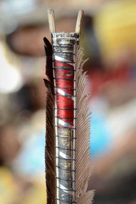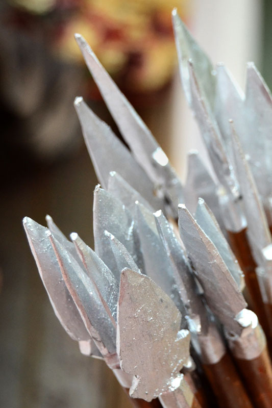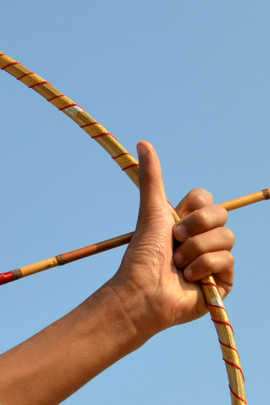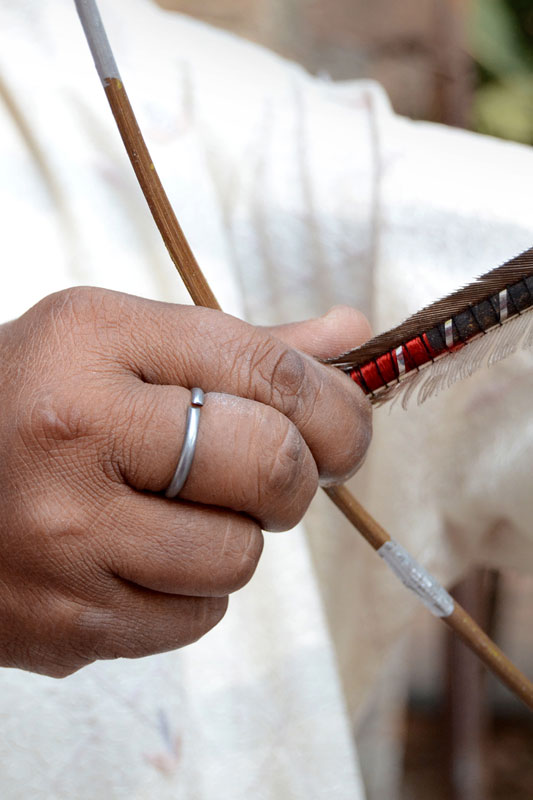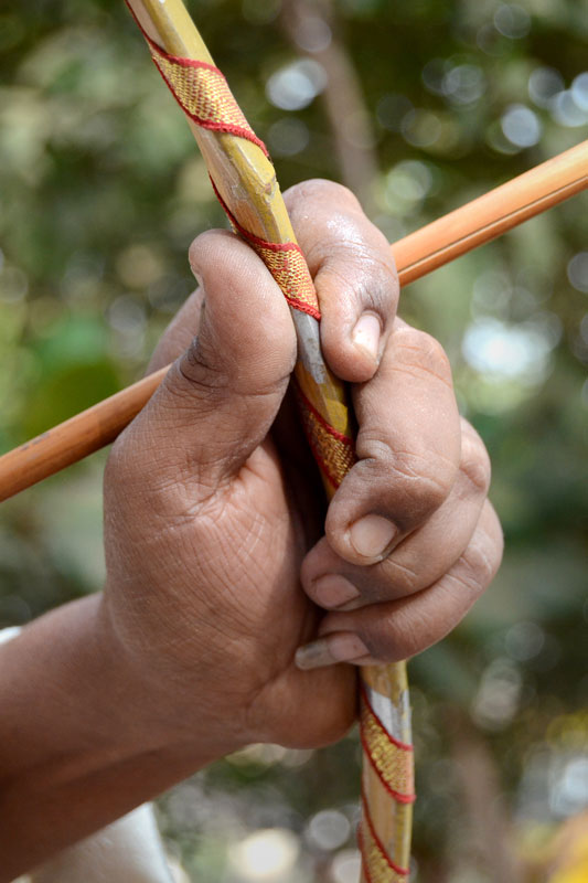 Jobat lies in the Alirajpur district of western Madhya Pradesh and is a predominantly tribal area. The men here have always adorned ‘teer kamaan’, the bow and arrow, which has been their symbol of chivalry and self-defense. It is also known as ‘hariya kamthi’ and is still used by the tribals for hunting animals. Jagan Nath Brijwasi is an expert in this craft. He has been making toy versions since childhood and now that he is associated with Hastashilp Evam Hathkargha Vikas Nigam, he makes them in actual size and material. The bow is made with bamboo and the arrows with cane. The sharp arrowhead is made with metal and at the other end feathers of eagle are tied with a string. These are sourced from the adivasis in the jungles. A person with good practice of it can shoot an arrow upto a kilometer.