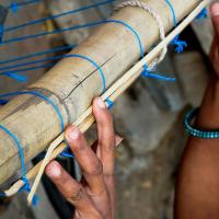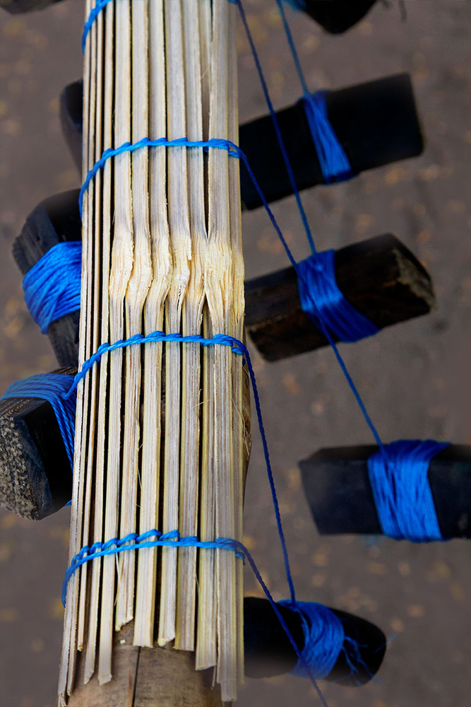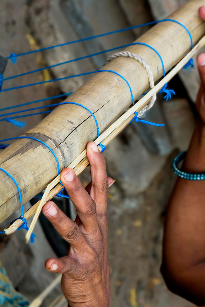 Gujarat is very famous for handicrafts, one among them is ‘Chick mat making’. A glimpse of West Indian handicrafts helps us to realize that West India is filled with the large number of talented people who are well versed in artistic works. These crafts are not only known to people of India but also it is famous all over the globe. People of South Gujarat mainly depend on making variety of crafts out of bamboo and earn their living. Whole of the family members work jointly in preparing this chick mat making and it is their family occupation. Tools and Raw materials for making Chick Mat are bamboo, sickle, saw, bamboo sticks and rubber pads., Etc.