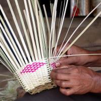 Mr. Sunil is a very famous artisan in West Tripura. In 1982, he received the Tripura State Award and the National Award in bamboo crafts. In Agartala, Sunil Nama's major production is bamboo basketry, miniature bamboo products like chains, bracelets, earrings, toys, etc., and tableware products consisting of cups, bowls, plates, and containers. Bamboo stems are acquired from the bamboo tree. These stems split into rough strips. Bamboo strips are coloured using dyeing process and are sundried. Now the process of weaving basket starts using a crisscross pattern.
