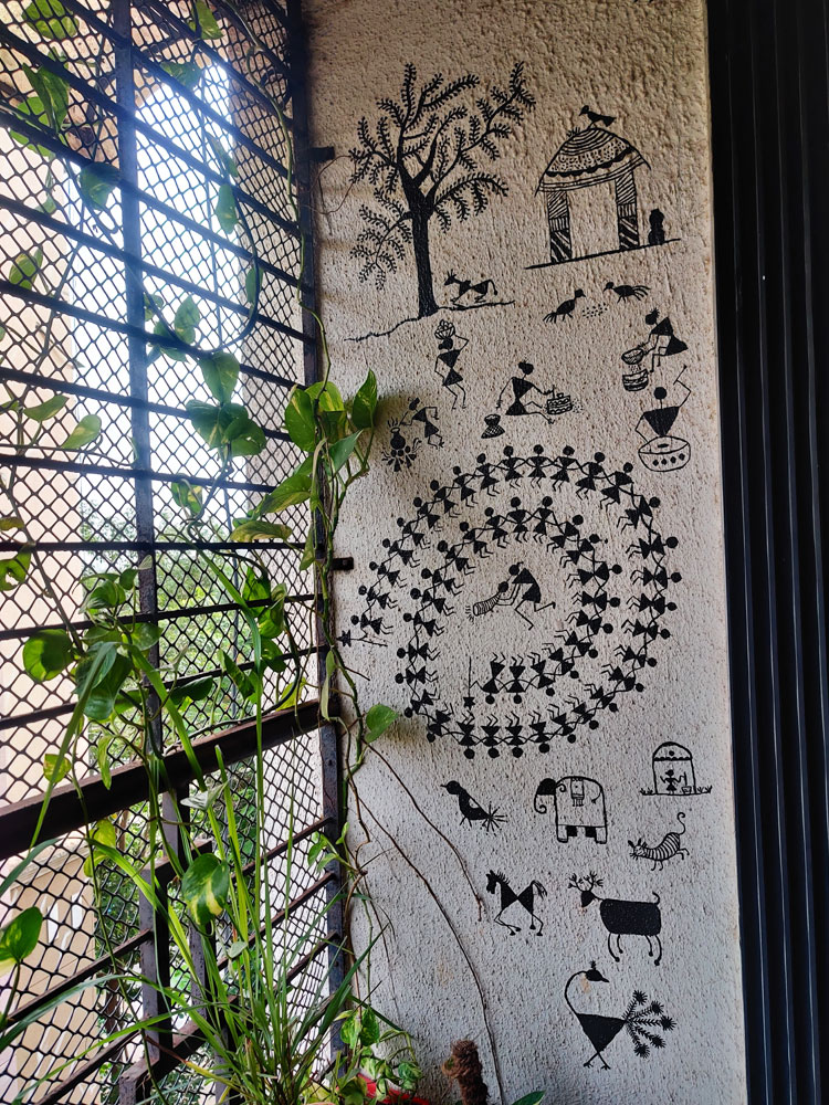 One fine afternoon while relaxing, the thought of wall painting came into my mind. Due to lockdown, no one can roam around have to sit forcefully at home. So I grab this time to paint my balcony side-wall with warli art. I am very much fascinated with warli art. It just needs few basic things to paint. Simply a brush, acrylic colour, and some patience. I draw very simple elements like a hut, tree of life, animals, Tarpa dance, and daily activities. It was just a wow moment when I finished with warli painting.