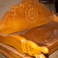 The senior wood artisans of Udupi are specialized in creating classic stylized motifs those are inspired by nature, epics like Ramayana and Mahabharata, great legends, flowers, creepers, birds and animals. Skilled and experienced artisans follow the rules of Silpa Sastra which has rules and guide lines for the traditional art. The decorative wood art style is inspired by Hoysala (A dynasty of Historical Karnataka) which is well known for its finest ornamentation work and for graceful sculptures. The themes of doorways, door panels, archways can be seen portraying nature life with birds, animals, lotus flowers, buds and creepers. Adoring Bas-Relief work done on the pillars represents their passionate artistic aspect. Few pillars are carved beautifully with combinational geometrical patterns to obtain embossed diamond effect. Attractive doors with curving stems and leaf designs, wooden padhuka-sandals, sacred idols of gods and goddesses include in the product collection.