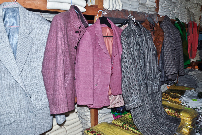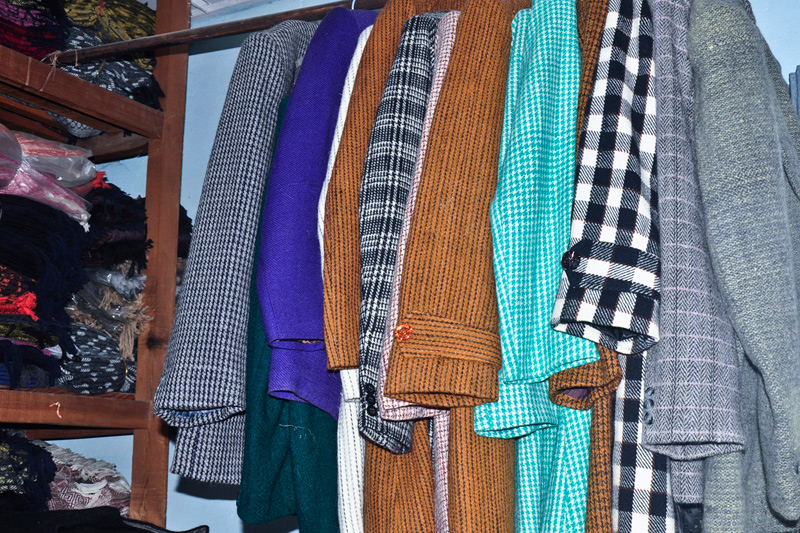 The woolen products have high demand in India during the winter season. Most of the designs have stripes or checks as the main design language. Some of the sweaters are hand-knitted using knitting needles. Weaved fabrics are stitched into coats, jackets, shall and many more woolen wears are stitched by the tailor. The fabric materials and the readymade dresses are also marketed to different parts of India.