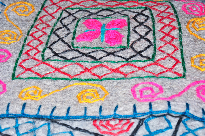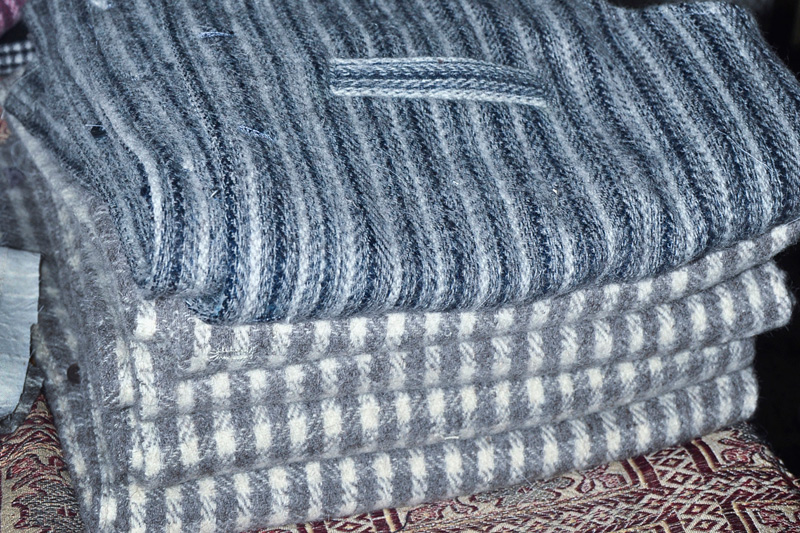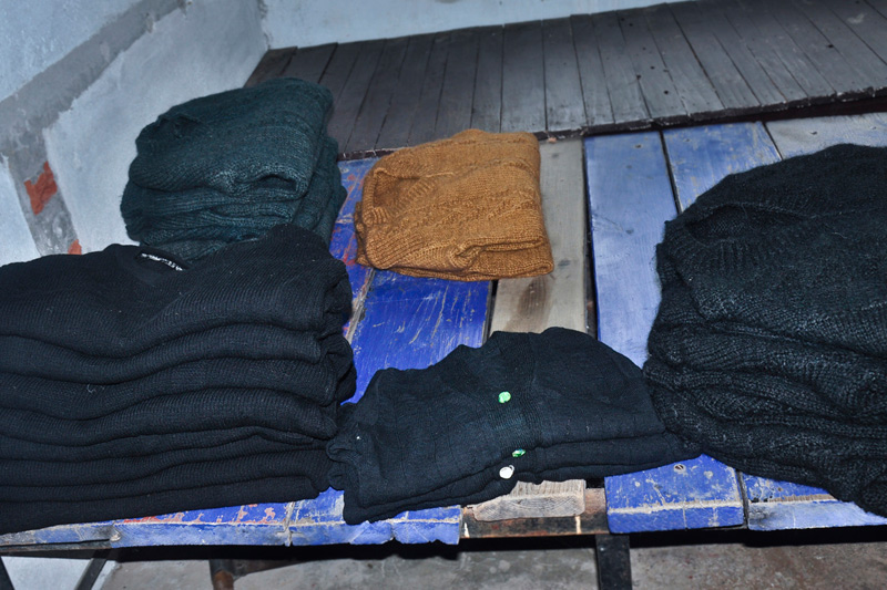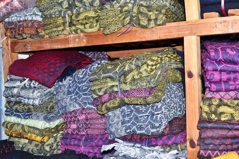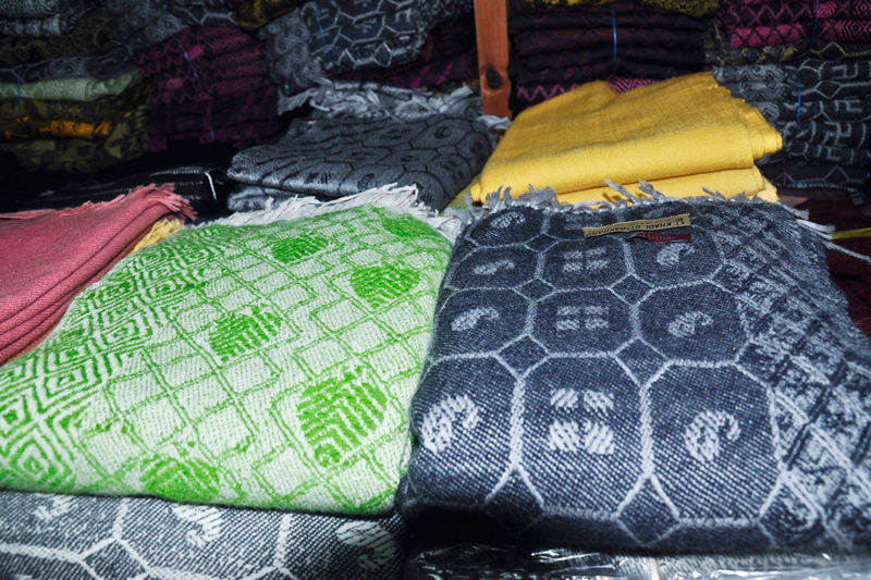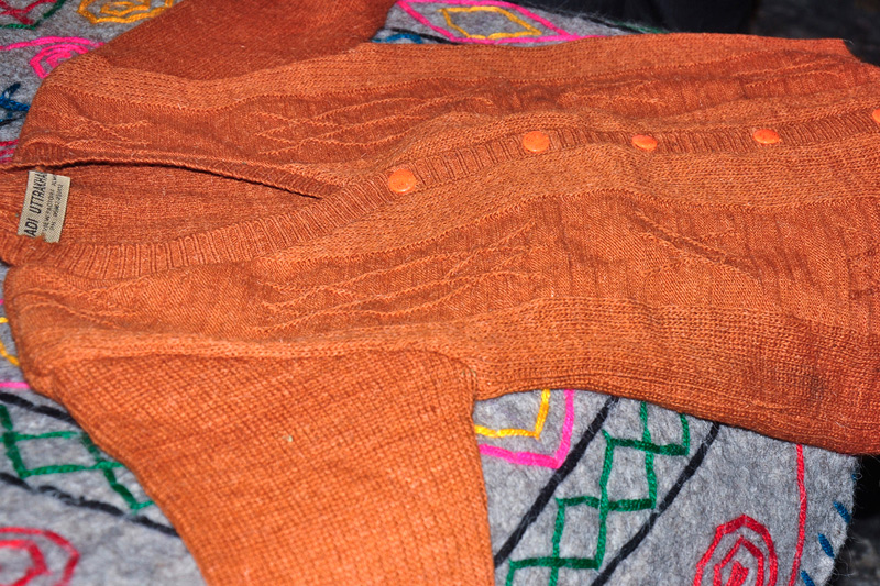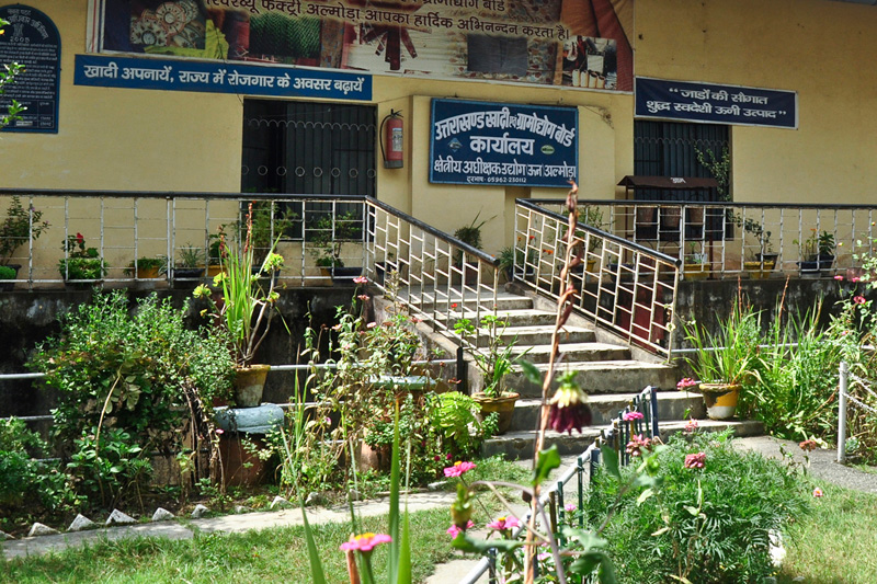 Khadigram in Almora is a non-governmental organisation (NGO) that provides opportunities to many wool-weaving artisans to come up with new innovative products made of wool. Artisans extract wool from sheep in winter and start production processes such as cleaning, carding, dyeing, twisting, weaving and stitching. The traditional wool manufacturing process is still in practice. The cleaned wool is spun onto spools to make threads and colored as per the requirement. Colored wool is again twisted to make spools and spindles for further weaving. Weaving is practiced in traditional looms. The woven wool cloth is sent to tailoring department to create products like sweaters, winter coats, blazers, blankets and praying mats.