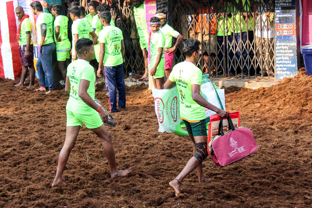 Two cars and three two-wheelers were among the prizes that were distributed to the winning bull-tamers and the owners of the winning bulls. Gold coins, electronic items, and cash were also part of the prize list.