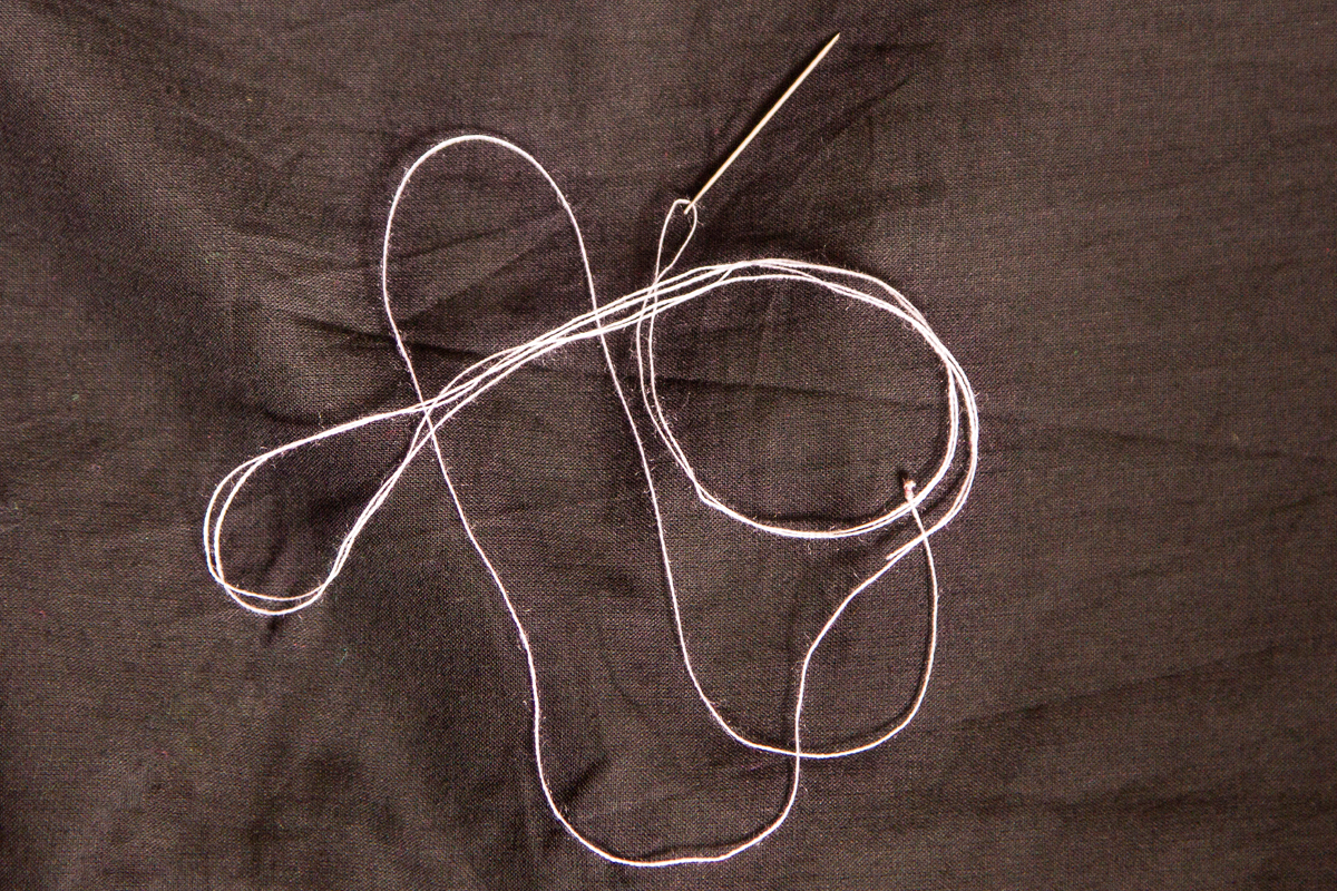 In case of Applique work generally sewing thread of cotton for cotton fabric and silk for silk fabric are preferred.