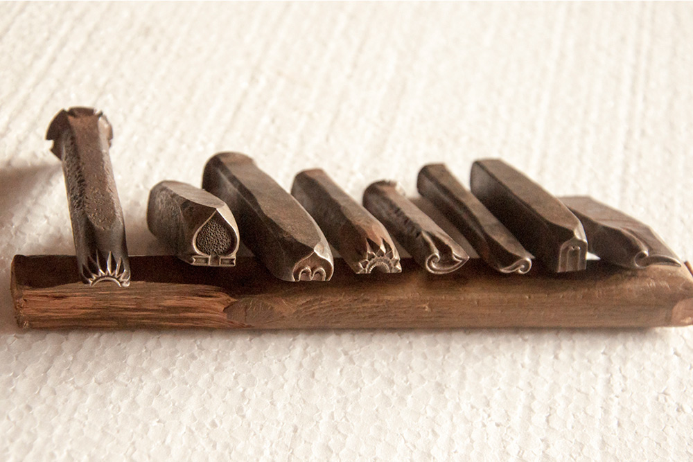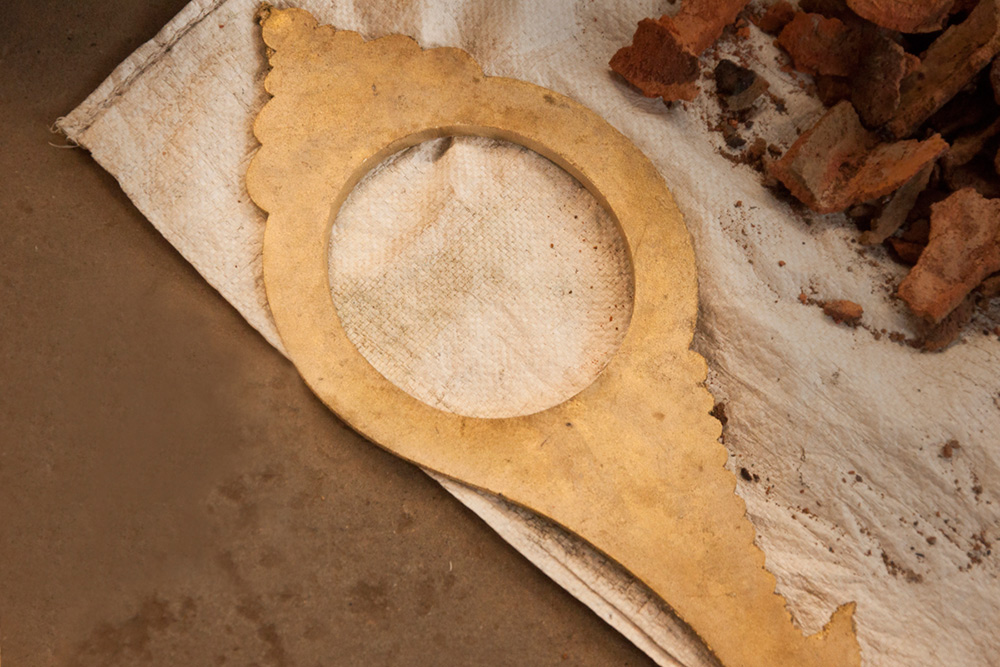 • Chisels are used in engraving and embellishing the brass mirror frame.