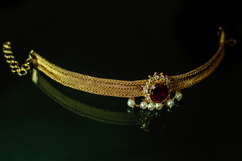 The names of the designs mainly made are Rudra Ghanti, Chappe Henneke, Segekai Matta amongst which Rudra Ghanti design is more in demand. People from different states give orders to these designs. Gold Baajuband are made on orders whereas silver and copper (gold plated) ones are available everywhere. Other than Baajuband, the artisan also makes different products such as Bracelets, bangles, chains, necklace, Kamar band (waist chain) and the size is 1-1.5 inches in width which suits the size of the upper hand.