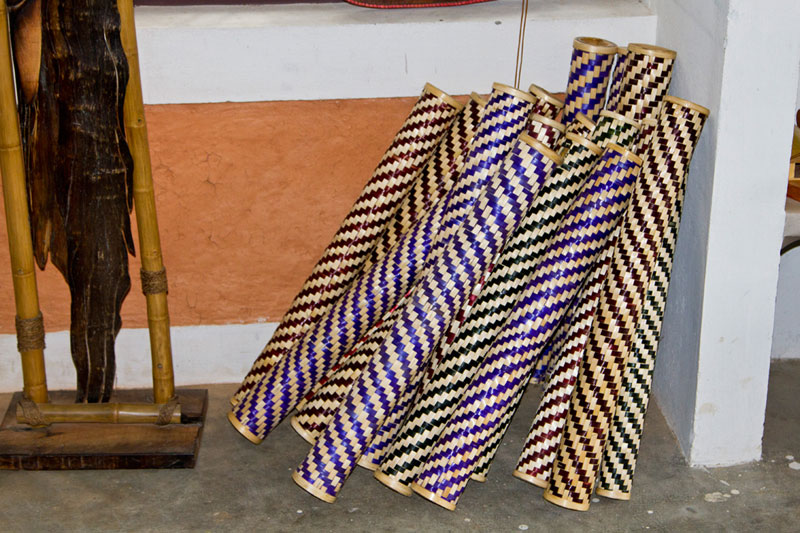 A wide variety of products made in bamboo are, floor mats, beach mats, table mats, table runners, coasters, curtains, furniture, shoulder bags, purses, coin, jewelry, magazine holders, cutlery trays, fruit trays, boxes, bins, baskets, lamps, table watches, masks etc. Few of the famous products made at URAVU are the bamboo pen and bamboo rainmakers.