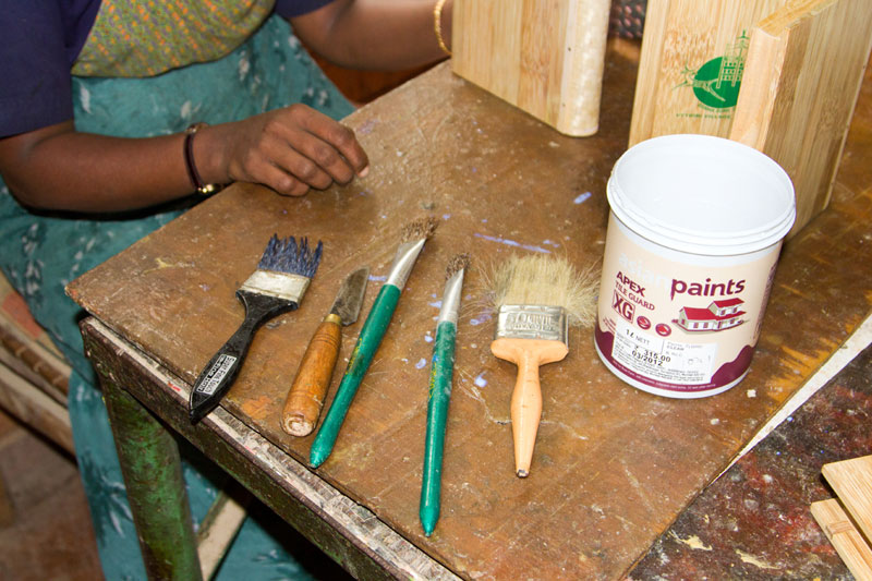 Tools used in processing and creating bamboo products are predominantly the one used for wood. Since there are no specific tools for bamboo therefore these machines are not accurate and create a lot of wastage. The sliver machine used to slice the bamboo is unable to cut bamboo according to the grains direction. Thus the grains are cut in between and therefore it reduces the strength. For this reason artisans prefer to use hand tools to work on bamboo.
