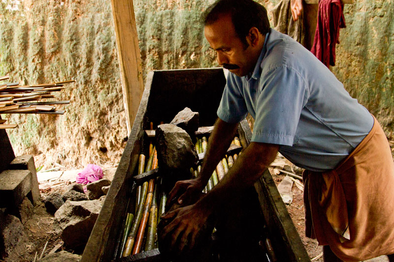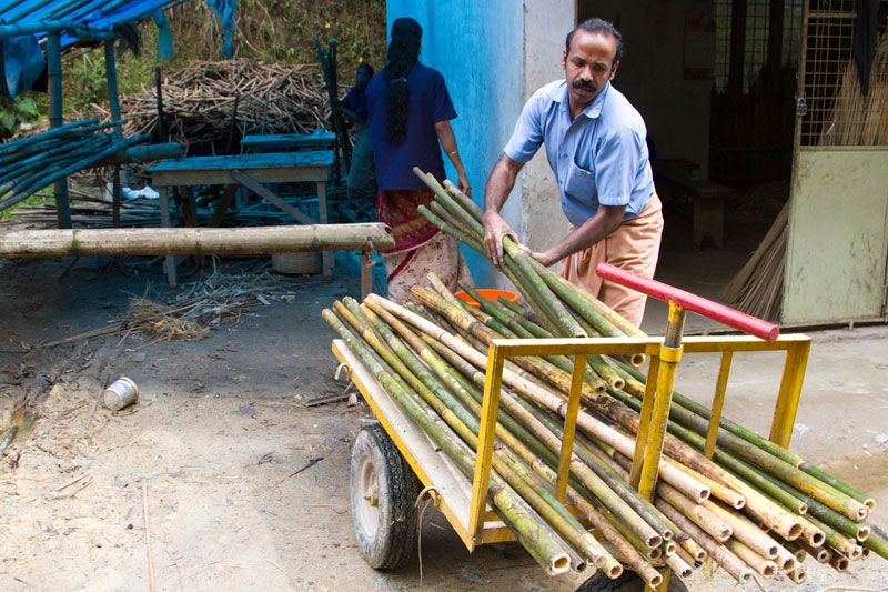 Traditionally the artisans performed a rigorous method to treat the bamboo. Bamboos were soaked in water for 2-3 months. This helped in removing all the glucose content from the bamboo and thus making it permanently borer proof. Since the process was time consuming therefore the Pressurized Treatment Plant replaced the traditional method.