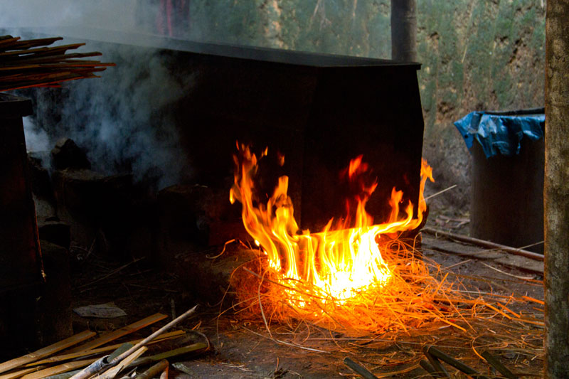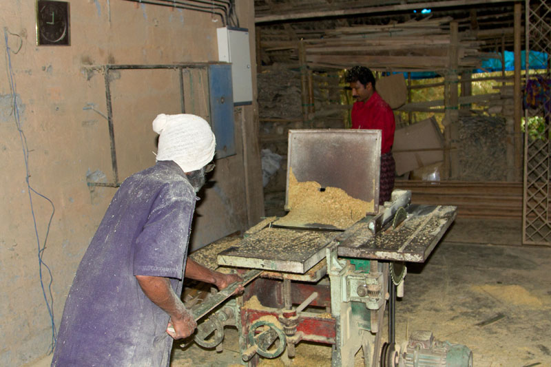 Once the basic cutting is done the poles goes for treatment in the treatment plant. The process is conducted both by men and women. The treatment process takes at least one day after which the poles are dried in sun.