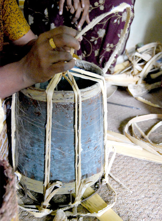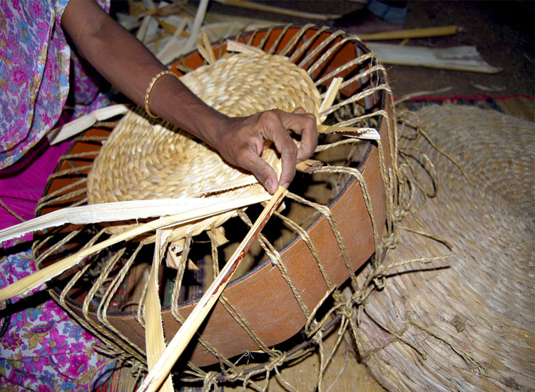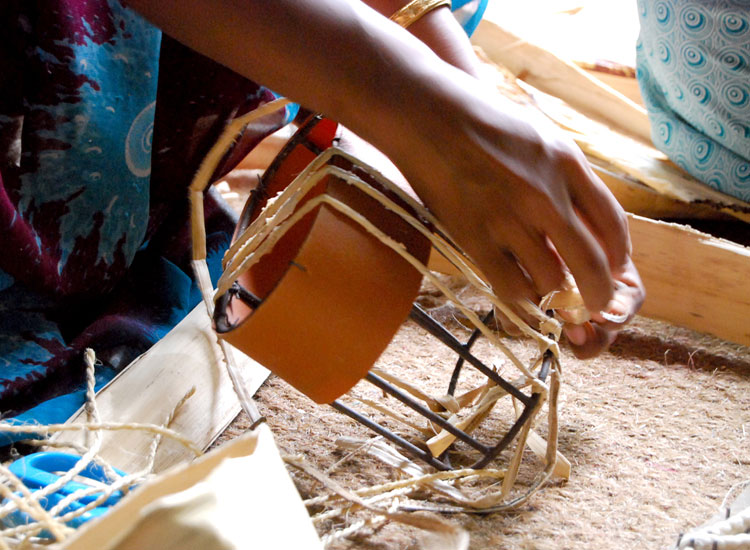 Banana stem craft is easily produced as they are made using traditional and locally available resourses, techniques, tools and instruments. The tools used for making products from banana stem are minimal. The frame is the baseof a basket or cushion, which helps in tying the twines to the frame, made of mild steel. The frame is covered with a plastic sheet on the inside for support. Following are the tools and raw materials used for making products from Banana Stem:
