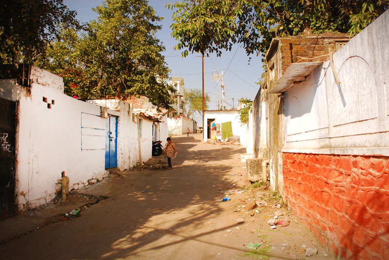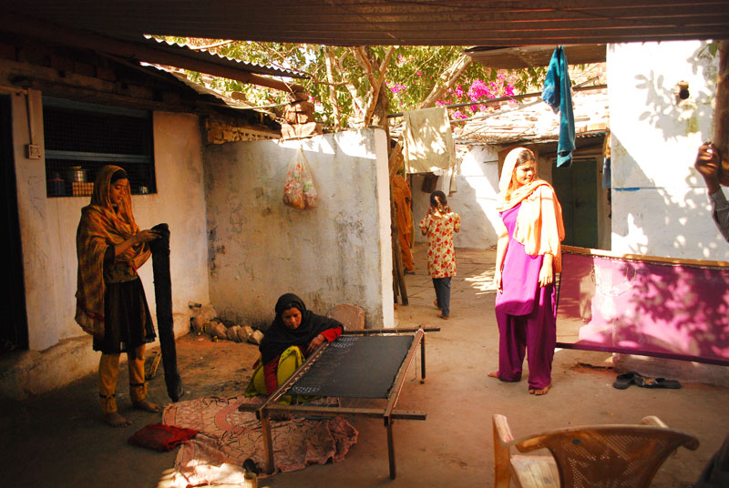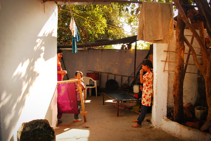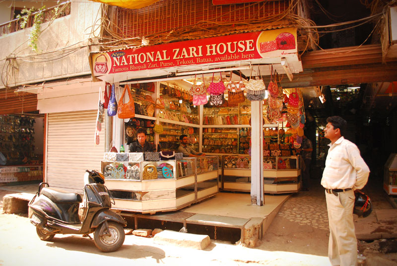 Nazia and her aunt Rashida live in Khanugaon, which lies in the outskirts of Bhopal city. Both the women are a part of 6 families cluster, which are involved in the craft. Where Nazia has involved herself recently, Rashida is making these Bhopali batuas since last 25 years. Only the women of the family do the embroidery. Omprakash is a fitting tailor, who has been working since last 30 years at New National Zari House.