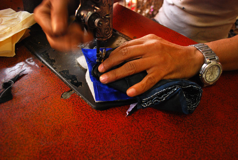 Home / Resources / Batuas of Bhopal / Process / Stiching of batua