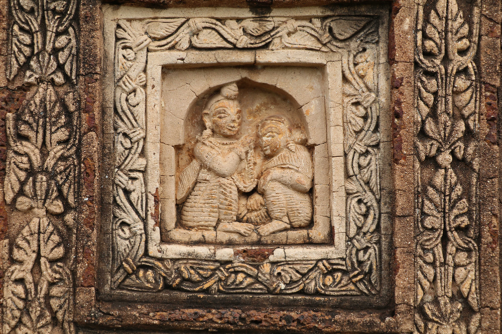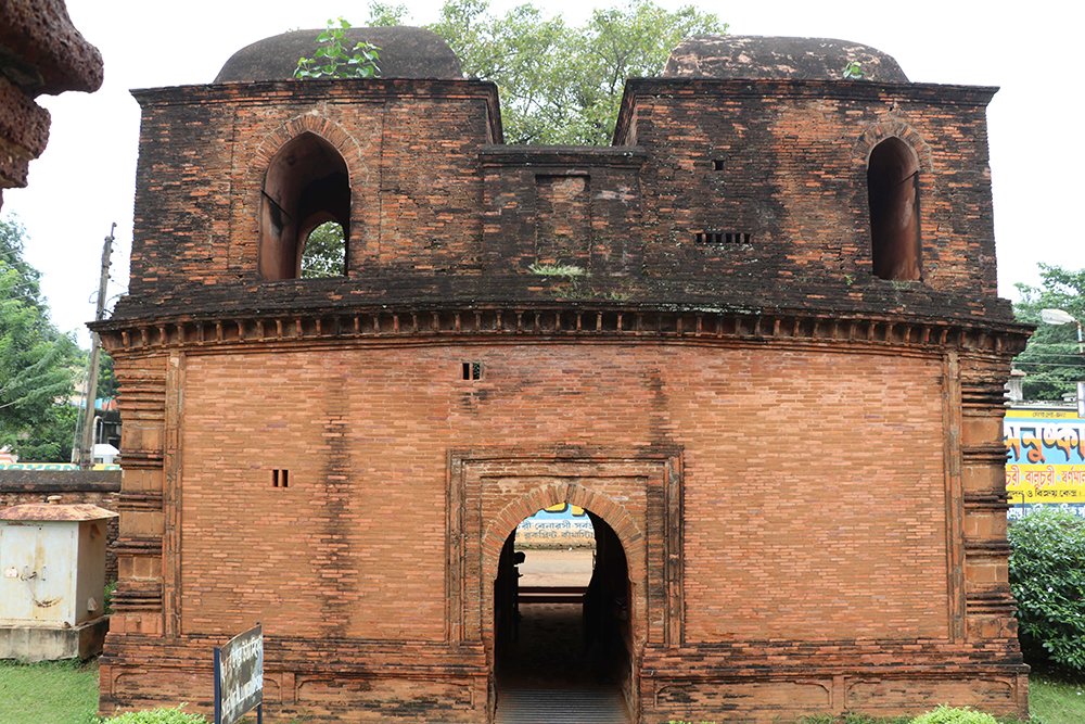 Built by Chaitanya Singha in ekaratna style. It was built in a square plan, consisting of a dome-shaped shikhara and stucco motifs depicting floral, geometric and depiction of the life of Puranas.