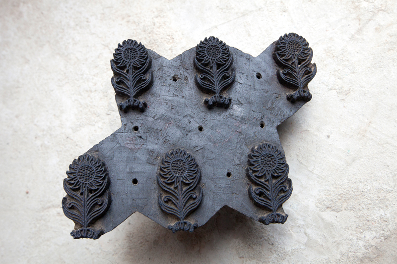 These blocks are usually made on teak or seesham wood. Artisans make sure that the wood is seasoned and then carve the motifs on it. The design are first printed on paper and stuck on the block of wood. Artisan, then start carving the wood with steel chisels, of different widths and cutting surface. The motifs are carved on the base while the top has a handle. These handles are either carved out from the same wood or by a low cost wood attached to the surface with the help of nails. Each block has two or more cylindrical holes drilled into the block for free air passage and also to allow release of excess color. Blocks made are of rectangular, square, oval, semi-circular, circular etc. shape. Once the block is made it is soaked in oil for 10-15 days to soften the grains. The life of these block are approximately 600-800 meter of printing. The outline blocks are called as rekh and the filler blocks are called as datta.