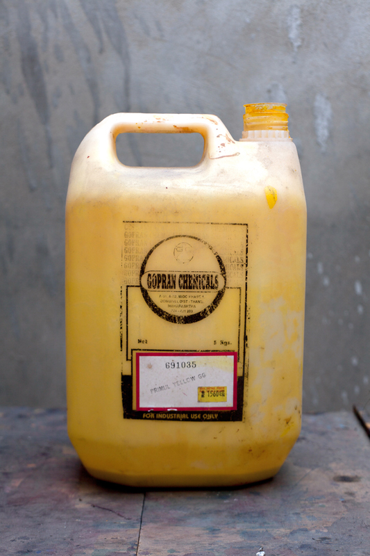 These colors are readily available in the market and are easy to use. The mixed colors can be stored in plastic buckets after use. Pigment colors, brought from the market are further mixed with kerosene and a binder. The mixing has to be done carefully as the thickness of the material can give raised effects on the cloth while printing. These colors follow the direct printing technique. Colors applied are visible and do not change after washing. A number of colors can be obtained by mixing two or more pigment colors.