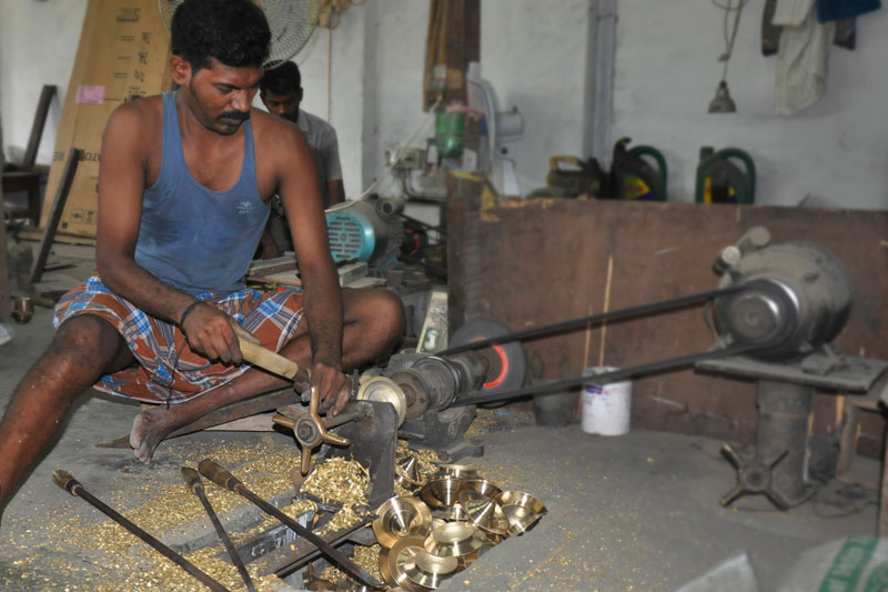 Tamil Nadu is one of the most famous religious places is well known for artistic brass lamps. Brass is considered to be superior (social relevance/perception) to all other metals, and brass products are one of the famous handmade crafts in Karaikudi.