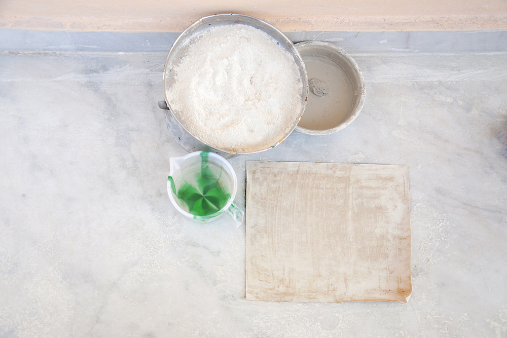 The cloth on which the process has to be done is of khadi cotton material. A mixture of suddha matti (White Mud), rice starch, boiled tamarind seed paste and natural tree gum is mixed in proportion and is made into a slurry kind of paste. The color of this mixture is off white and it is evenly applied with bare hands on the khadi cotton cloth. This process is repeated for three times for each piece of cloth. At every single application the consistency of slurry is made thinner by adding more tree gum into it. After the application of three coats on the khadi cloth piece, it is allowed to dry naturally under the sun and is ready to be used for painting.