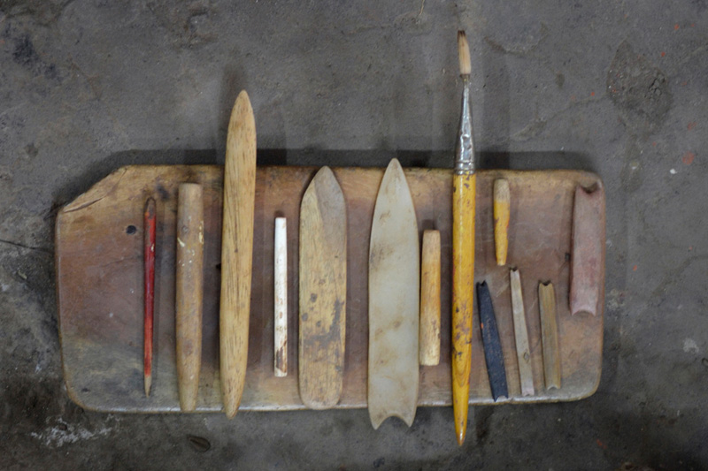 The tools and raw materials used for making clay idols are very basic and simple and are available locally. By using these handmade tools the artisan create different varieties of earthen products.