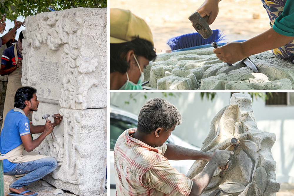 Stone was the first material used by prehistoric men to create tools. In India, the tradition of stone carving is one of the richest in the world, as is evident from temples in Khajuraho, Konark, Martand in Kashmir, Ellora, Belur and Halebidu, Banavasi, Badhami etc., which have richly carved sculptures and relief work on them. Indian craftsmen use different types of stones like marble, soapstone and sandstone etc. Later 20th and early 21st-century sculpture has assumed a central position in contemporary art and followed the patterns of several postmodern art movements. The architecture of Karnataka can be traced back to the southern Neolithic and early Iron Age. Mysore Kingdom (Wodeyar) rule has also given an architectural master structure in the St.Philomena’s Church at Mysore that was completed in 1956. Whereas in addition to many Dravidian style architectural temples. The historical monuments of Pattadakal and Hampi are listed under the UNESCO World Heritage List of 22 cultural monuments in India. The Kadambas of Banavasi were the ancient royal dynasty of Karnataka from 345 to 525 and made a significant early contribution to the architectural heritage of Karnataka. Kadambas were the originators of the Karnataka architecture.
