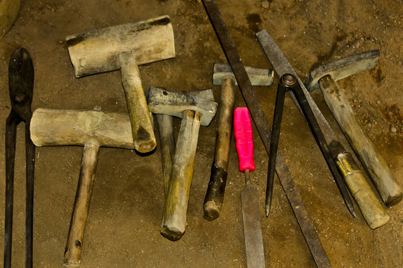 Iron Hammers, Mallet, Metal Cutting Scissors, Metal Compass, Measuring Scale, Measuring Tape, Files.