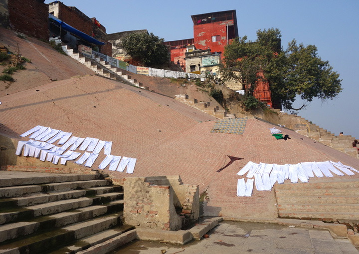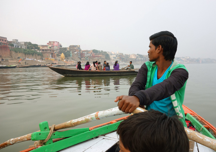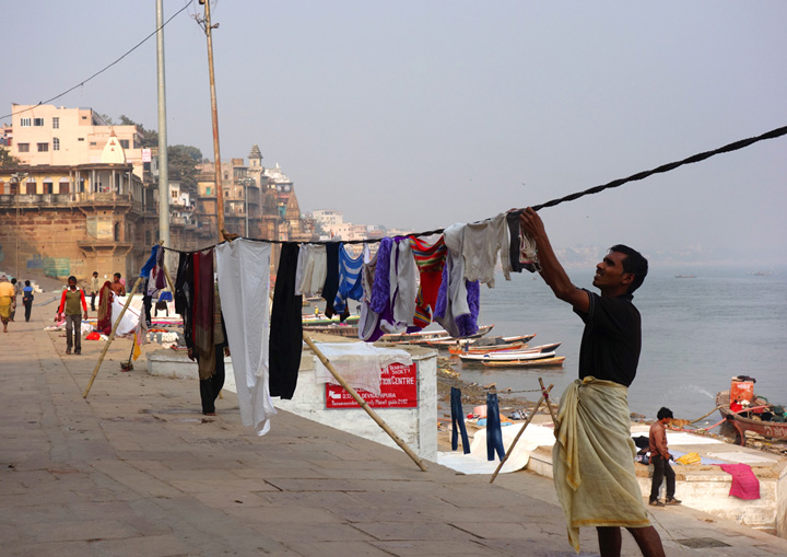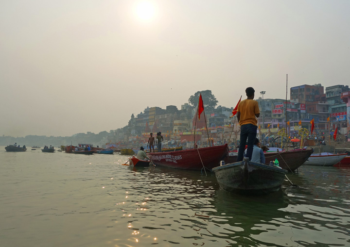 Boats have the job of bobbing softly on the River Ganges, while a boatman unties the ropes, lets out the nets and cries out to passing travellers. Clothes lay stretched out on the Ghats, while the sun does its duty, virtuously.