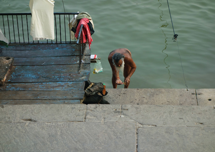 This city awakes at the crack of dawn. The prayers, chants, rituals and habits that are branded into the Hindu ideology are engrained into the daily life of the people here. Bathing, washing clothes, giving offerings, going for long walks, meditation or chanting all echo in the early morning sky. Crows and parrots all pitch in as well, indifferent to individual inclinations.